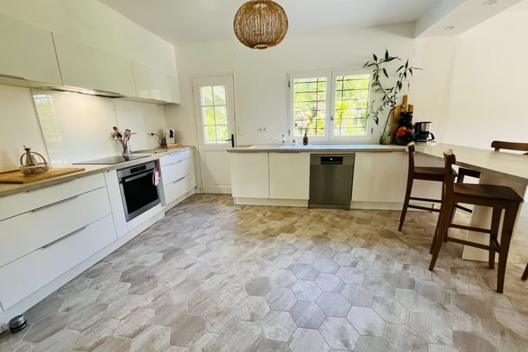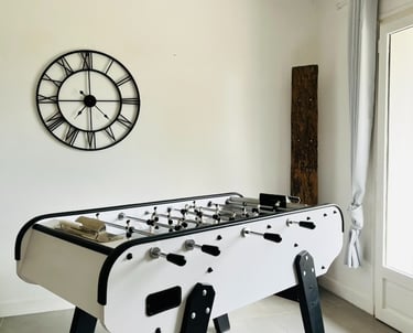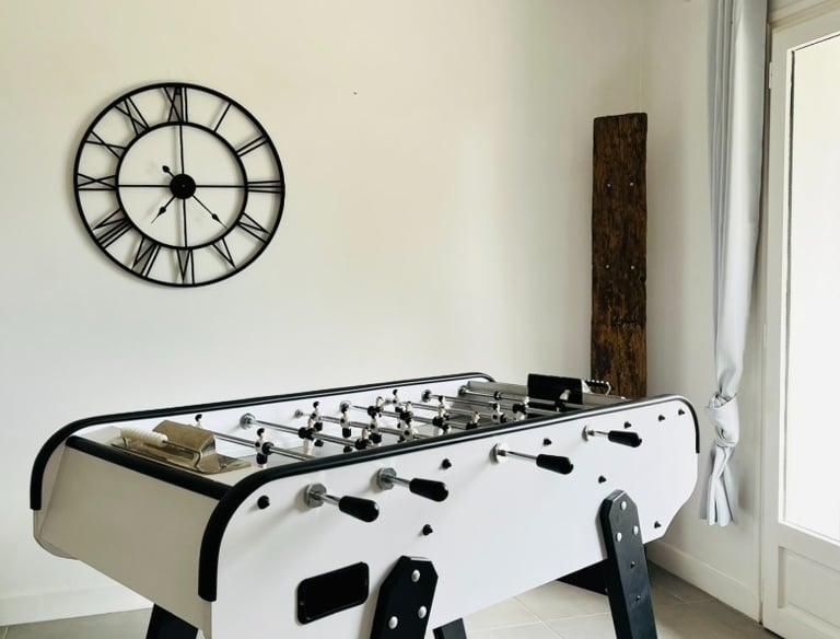 Pour vous détendre ou vous amuser, la maison est équipée. S'ajoute à cette grande pièce, une entrée spacieuse, avec un buffet de rangement. Le placard sous l'escalier possède tout le nécessaire pour faire vos courses, le ménage, le repassage, ou encore vous amuser à l'extérieur.