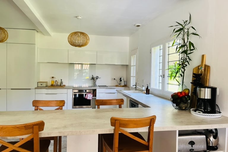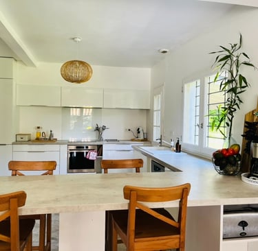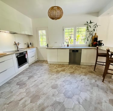 La Roquetière dispose d'un large espace de séjour, salle à manger et salon ouvert.