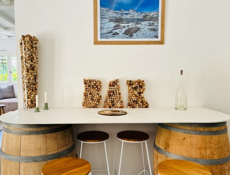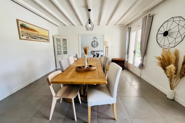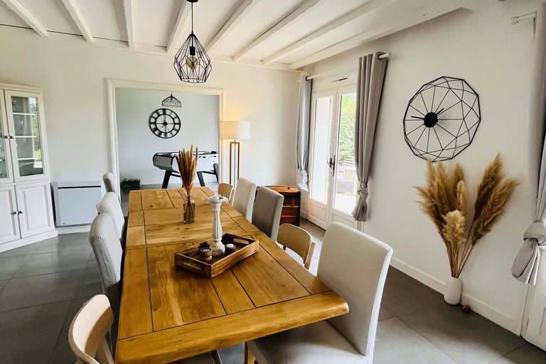 Pour des moments conviviaux autour d'un verre, la salle à manger possède un bar. Il y a également une enceinte connectée pour mettre de la musique.